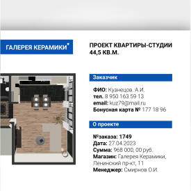 Задание: Кухня-гостиная 20-30м от 15 SKU с визуализацией и ссылкой на панораму. Создание альбома чертежей с фирменным бланком.